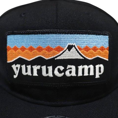 ○ゆるキャン△CAP!「ふじさんロゴ」と「リンのバイク」をデザインしたフラットバイザ-タイプのスタイリッシュなBASEBALLCAPです。BIGサイズの刺繍と「YURUCAMPラベル」がポイント!