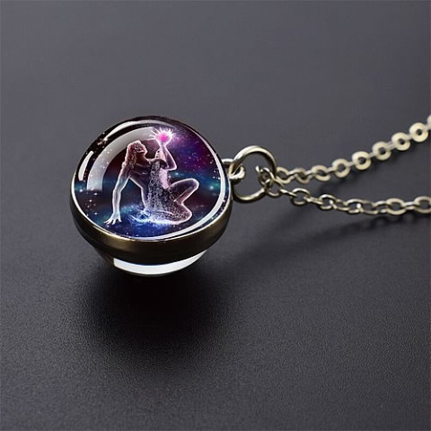 【#kawaiiiii!】NEW!暗闇で光る 球体星座ペンダント(蓄光)★水瓶座★