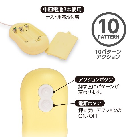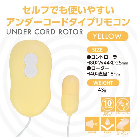 握れば分かる使いやすさがウリのアンダーコードスタイル。コードがコントローラーの下側から出ているのでセルフプレイの時も通常時もコードの煩わしさが軽減されたスタイリッシュデザインローター登場。単四電池3本を使用した4.5Vの強力振動マイクロモーター搭載の小径ローターに可愛いカラーバリエーション、さらにマット加工を施し、上質を極めた新型ローターです。10パターンアクション・ワンプッシュで簡単にON/OFF操作可能です。