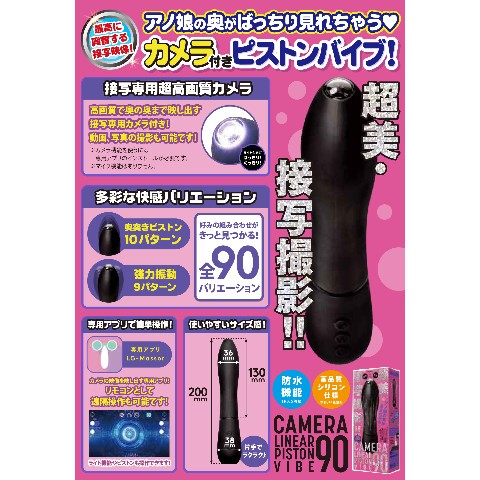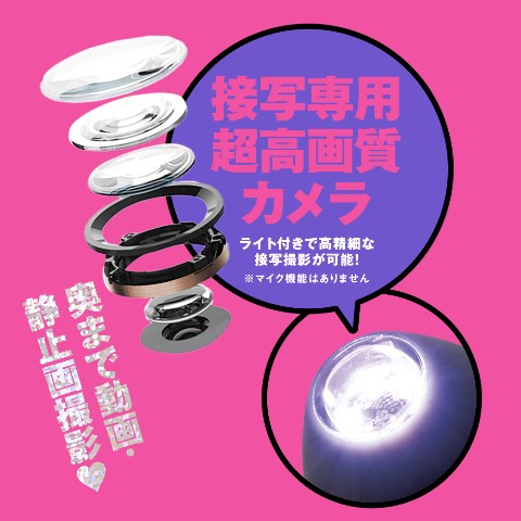 超綺麗な動画・写真の接写撮影!!バイブ先端のカメラでアノ娘の奥が見えちゃう♪ライト機能で暗いところもしっかり明るく照らします!接写専用超高画質カメラ搭載で高精細な接写撮影が可能!バイブとしても優秀!リニア振動によるやわ突き~極突きまで10段階の重厚な奥突きノッキング&やんわり~激責めまで9段階のブルブル振動で全90バリエーションの極イキ仕様。高品質シリコン仕様でやさしい肌触り。IPX5等級の防水仕様なのでお手入れも楽ー。しかも静音設計。※本体:充電時間約180分※本体:最大連続稼働時間 バイブのみ約120分 ピストンのみ約40分 両方稼働時約30分(初期振動パターン未変更時) IPX5※放水ノズルを使って噴流水を最低3分間あてる試験(浸水は不可となります)※付属品:USBマグネット式充電ケーブル_説明書 ※マイク機能はありません。※カメラ機能は無料の撮影専用アプリをダウンロードしてお楽しみください。検査番号:2204982