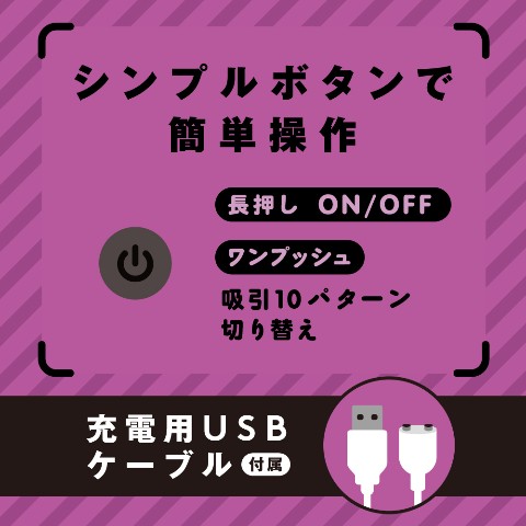 吸引:10パターン&完全防水IPX7等級&静音設計<50dB&充電用USBケーブル付属。