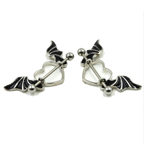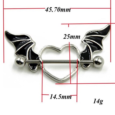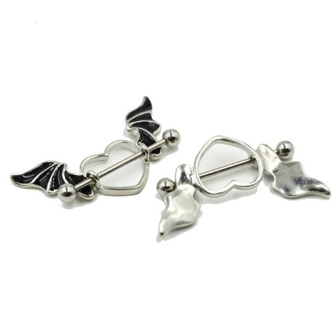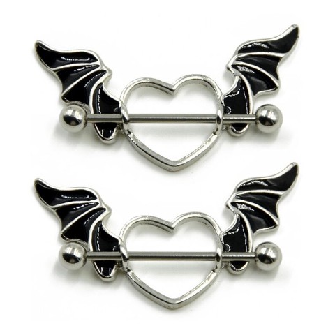 悪魔の羽根がついたハート型のニップルピアス