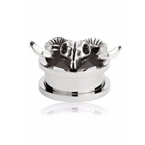 COWSkullのヘッドが付いたデザインフラッシュトンネルピアス。