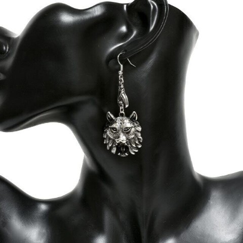 狼をモチーフにデザインされたアンティーク調のシルバーピアス。