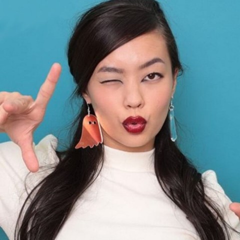 オバケがモチーフの可愛らしいアクリルプレートピアス。