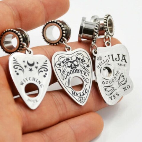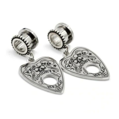 プランシェットのアイテムチャームが揺れるトンネル型ボディピアス。