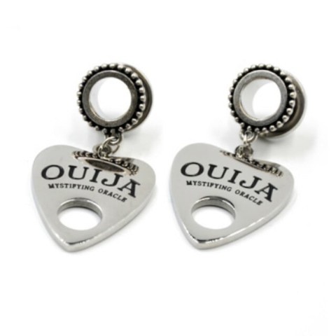 「OUIJA」のロゴ入りトンネル型ボディピアス。