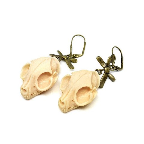 動物の頭蓋骨がモチーフのオカルティックなデザインピアス。
