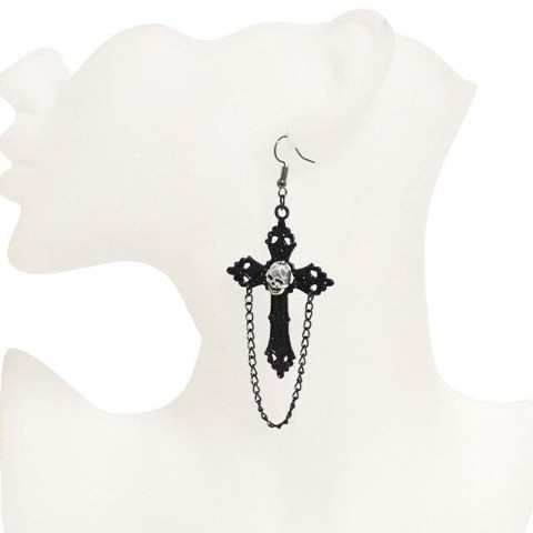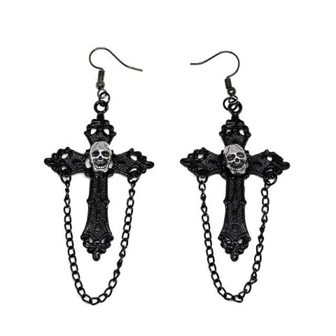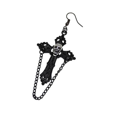 中央にシルバーのスカルがセットされた、インパクト大なクロスデザインのピアス。