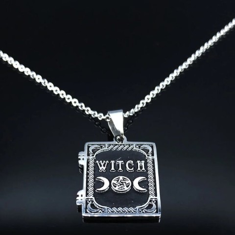 ネックレストップは魔女の書をイメージした本のモチーフ。