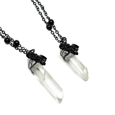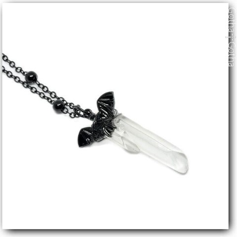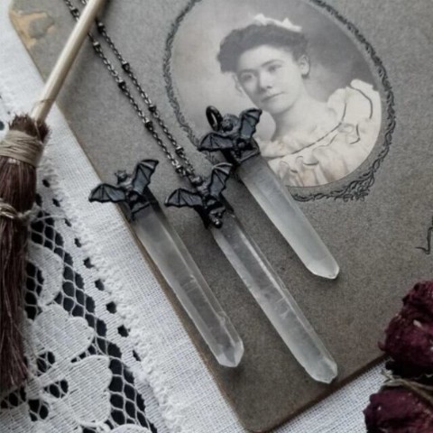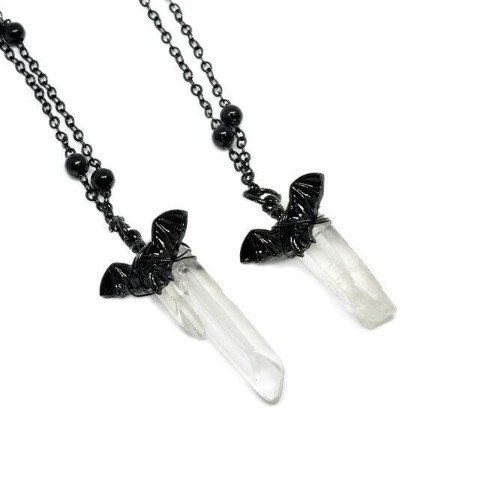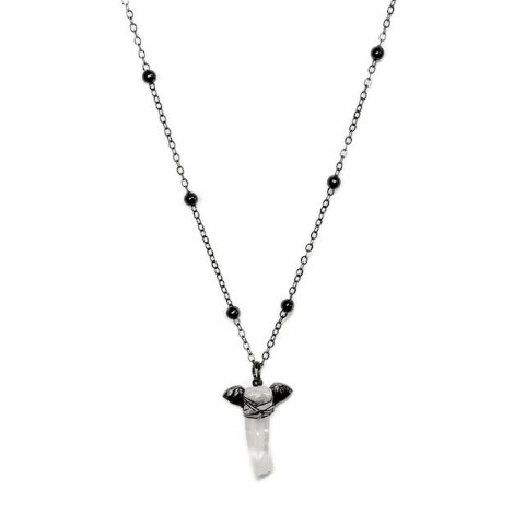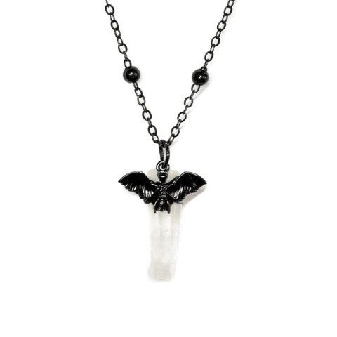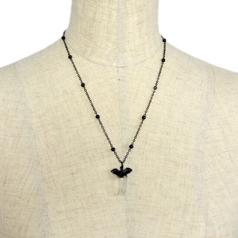 コウモリのモチーフとクリスタルのストーンがぶら下がるネックレス。
