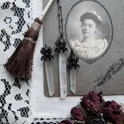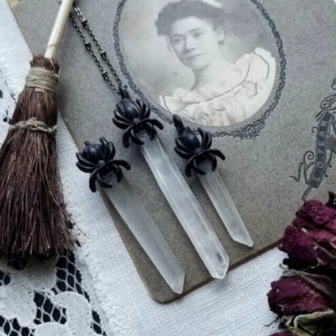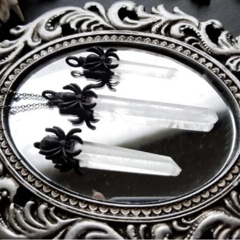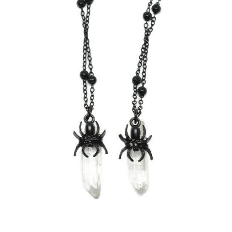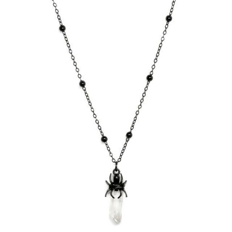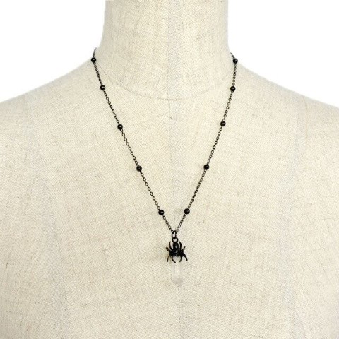 蜘蛛のモチーフとクリスタルのストーンがぶら下がるネックレス。