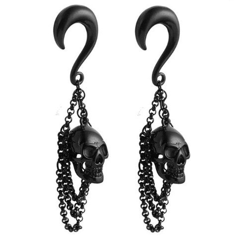 ブラックのスカルヘッドが迫力満点なフック式ピアス。