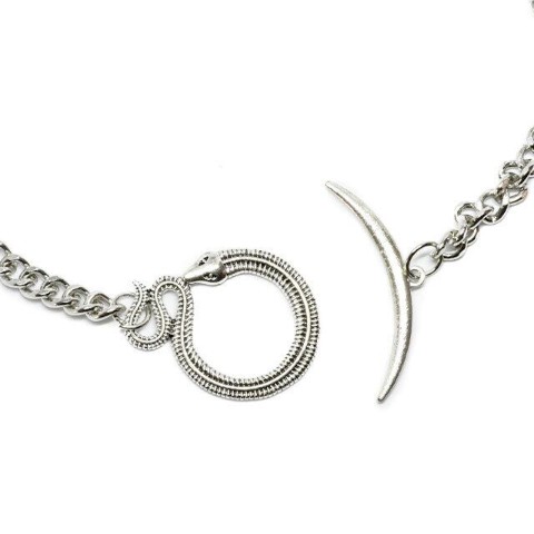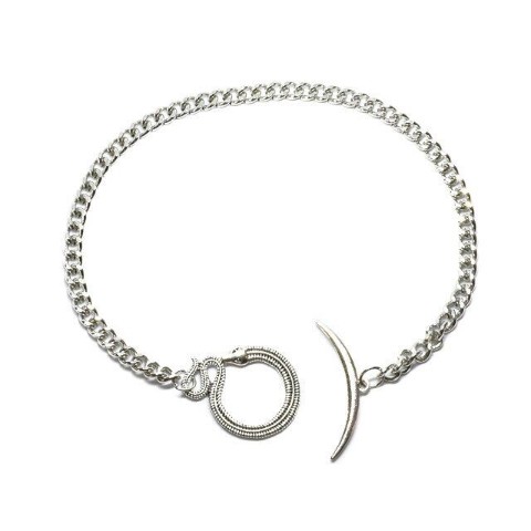 三日月とスネイクがモチーフのシルバーチェーンチョーカー。