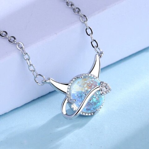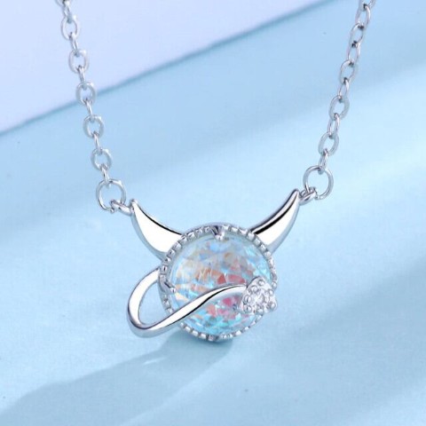 光や角度によって様々な色に輝くストーンが埋め込まれた、小悪魔デザインがかわいらしいネックレスです。