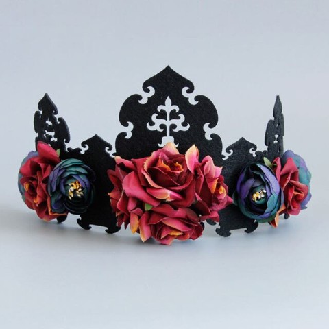 ゴシックなクラウンバンドに花飾りの付いた華やかな冠。