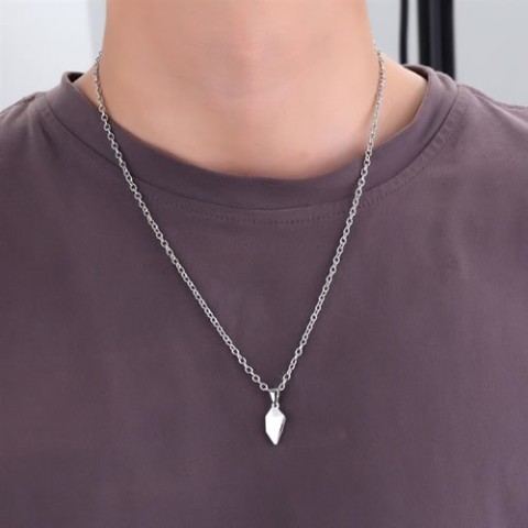 【#kawaiiiii!】カップルにおすすめ♪磁石で引っ付くハート型ペンダント(シルバー×シルバー)