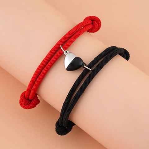 【#kawaiiiii!】カップルにおすすめ♪磁石で引っ付くハート型ブレスレット(ブラック×レッド)