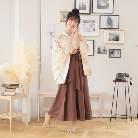 「ゆる袴」は和服を日常的に気軽に楽しんでいただきたいという想いから生まれた見た目が袴型のルームウェアです。