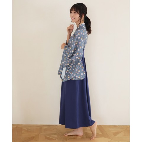 「ゆる袴」は和服を日常的に気軽に楽しんでいただきたいという想いから生まれた見た目が袴型のルームウェアです。