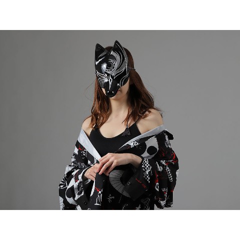 口の部分が露出しているため、着用をいただいたまま会話や歌唱も可能です。また、狐面堂オリジナル狐面の中では軽めで着けやすくなっています。