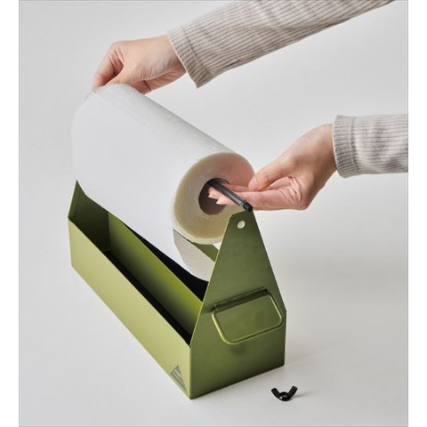 持ち手にキッチンペーパーを取り付けて、中に調味料などを収納できます!