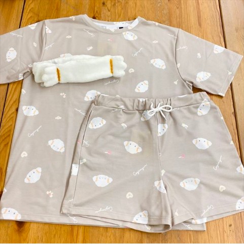 人気キャラクタ-をデザインしたル-ムウェア上下。