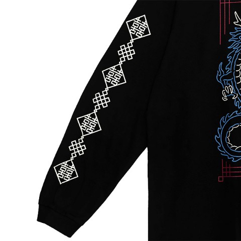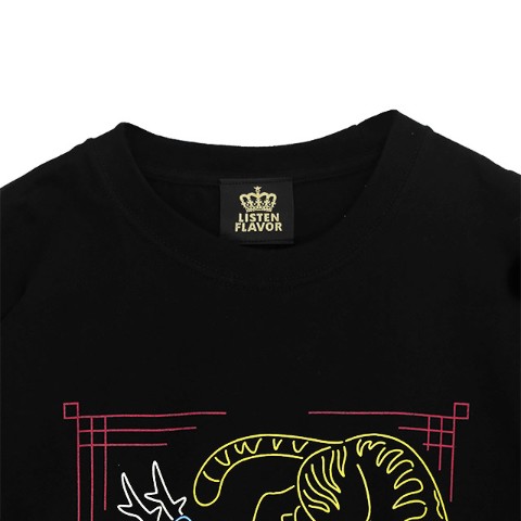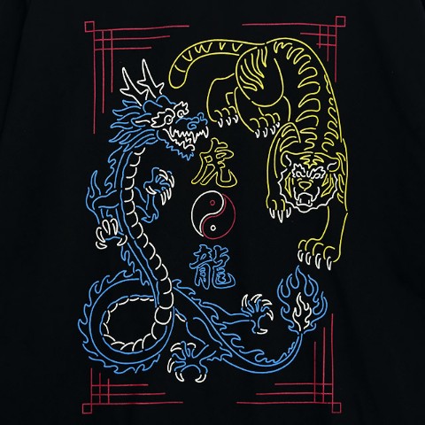 チャイナ感漂う龍と虎のモチーフをネオン風デザインに落とし込んだ、コットン素材のグラフィックロンT。