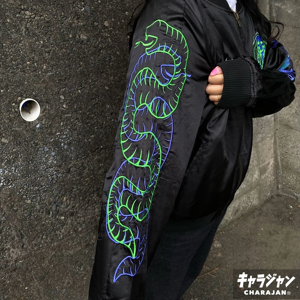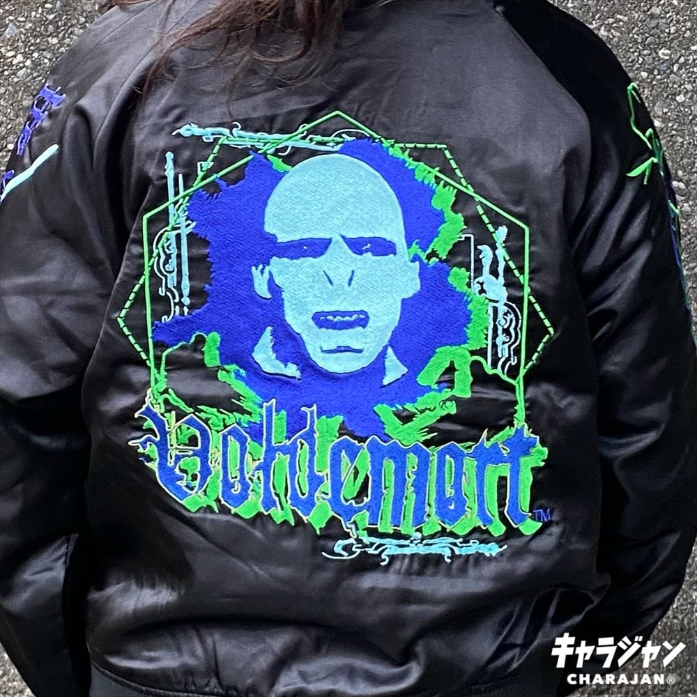 インパクト抜群!名前を呼んではいけないあの人、と世間で呼ばれる最強の闇の魔法使いヴォルデモートが背面に大きくデザインされたスカジャンです。