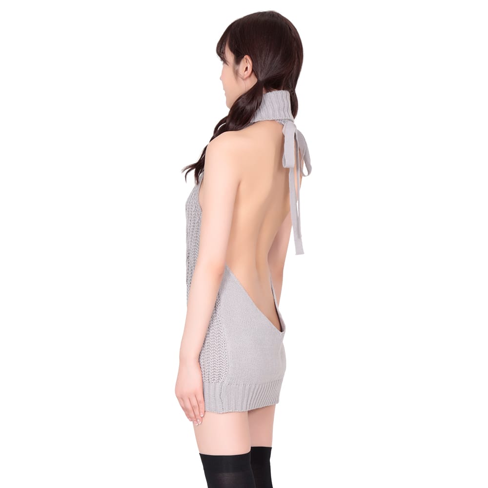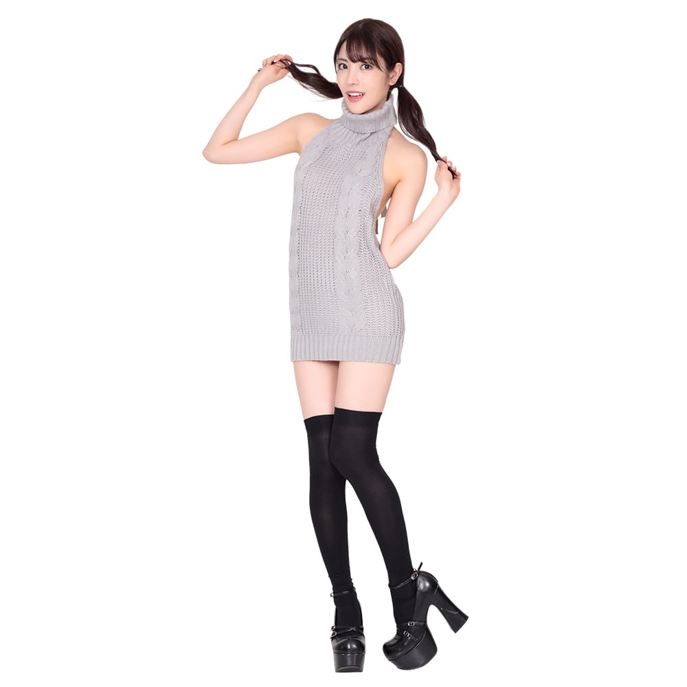ノースリーブで背中が大きく開いている噂の童貞を殺すニット。露出度が高くセクシーで女性が思わず着たくなるようなエロ可愛いセーター。セクシー増し増しのニーハイ付き。