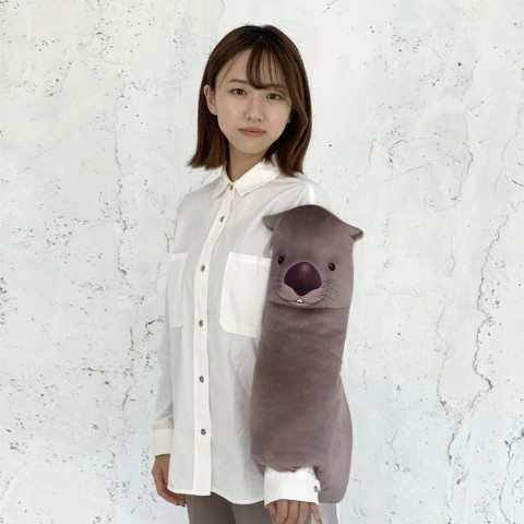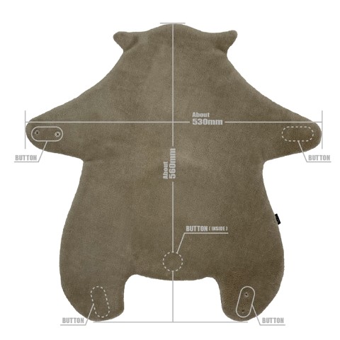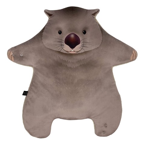 ウォンバットの前足、後ろ足に各2個スナップボタンが付いていますので、腕等に装着する事ができます。ラグマットやひざかけ等としてもお使いいただけます。