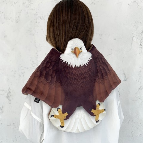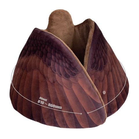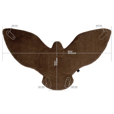 ワシの羽、足に各2個スナップボタンが付いていますので、背中から首にかけて装着する事ができます。ラグマットやひざかけ等としてもお使いいただけます。