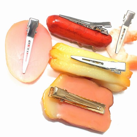 【#kawaiiiii!】キャンプに行こう!パリッパリッのウインナーのヘアクリップ(ブローチにも)
