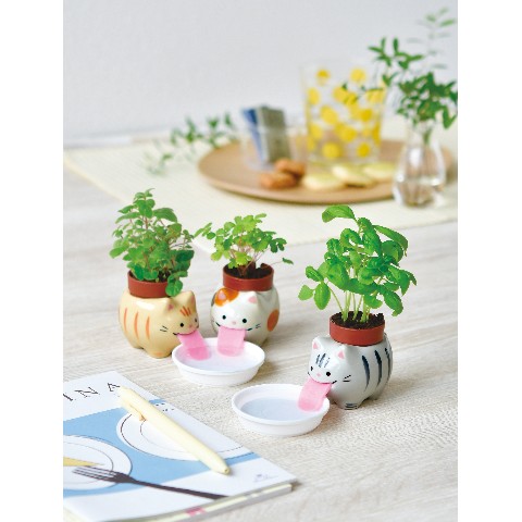 ぺろぺろとお水を飲んでいるような容器に入った可愛い栽培セット「ペロポン」にネコたちが仲間入り!♪