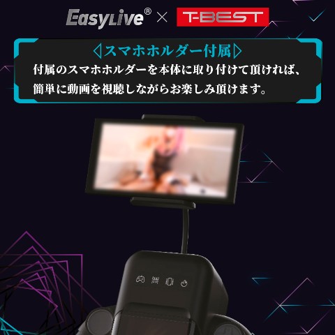 更には、本体上部にスマホを取り付けできるようスマホホルダーが付属されているため、いつでもどこでも携帯をカチッと取り付けて、お気に入りのムービーを見ながら昇天♪