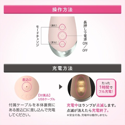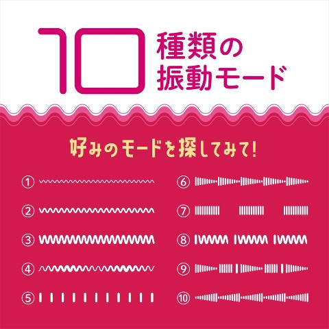 。操作方法も簡単で10種の振動モードからお好みのパターンを探して見てください。
