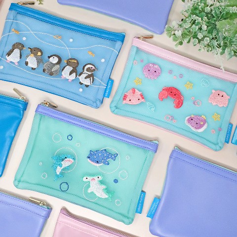 海の生き物をころっとまるくデフォルメにした「海中散歩 ぽちゃまる」シリーズより、ポーチが登場です!