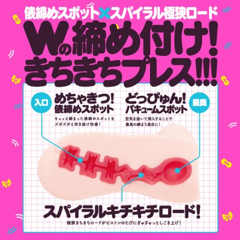 ぎゅぎゅっと締め上げ!生締まり快感!豊満肉厚BODY約480g!俵締めスポット×スパイラル極狭ロードでWの締め付け!奥にはどっぴゅんバキュームスポットを搭載!空気を抜いて挿入することで最高のきちきちプレス! 直接肌に触れるものだから安心の国産素材&国内生産。MADE IN JAPAN 使うほどにあなたに馴染んで成長するもっちり人肌感覚の革命的新素材「momochi」使用。パッケージイラスト:イチリ