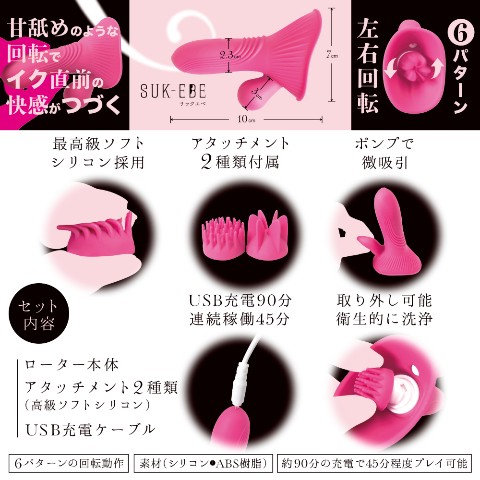 優しく舐めるから、イク直前の感覚がつづく。それが「ヤバ回転ローターNEBURINGUS-ネブリングス-」です。強い振動ばかりに慣れていると感度が鈍くなりませんか?今こそ優しくせつなく敏感な部分を「ねぶり」ましょう。敏感なアソコも胸もどちらもOK!!最初に使うときはお好みのアタッチメントを装着してからご使用ください。極限まで柔かくした高級シリコンブラシが優しく回転して刺激します。(薄めのローションをつけると滑りが良くなります)焦らされるような独特の感覚が、オーガズム直前のもどかしさを再現。左右回転6パターンで飽きさせません。優しさを演出するために敢えて「微」吸引ポンプも設置。ポンプのプッシュでもどかしい吸い付きが更なる焦らしを演出。しかも交換用アタッチメントつきで楽しさ2倍。【セット内容】ローター本体/アタッチメント(高級ソフトシリコン)/USB充電ケーブル。滑らかな感触をお求めの場合はローションをご利用ください。・6パターンの回転動作・約90分の充電で45分程度楽しめます