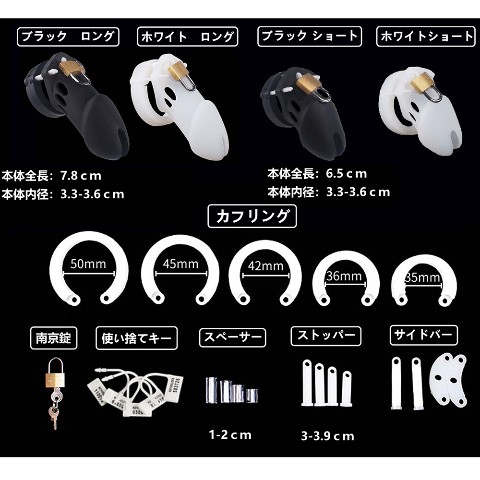各部品を組み立てることで、あらゆるサイズに適した貞操帯が出来ます。先端に排泄口があるので装着中も排尿が出来ます。南京錠をすることで射●管理を確実に行うことが出来ます。