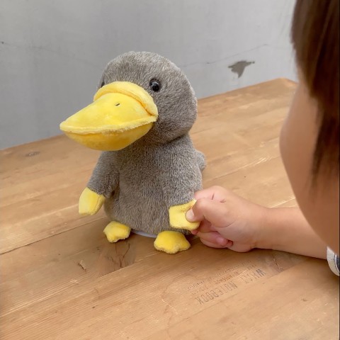 動いてしゃべってずっと楽しい、話した声をまねして返す「モノマネモード」と、メッセージが録音できる「録音 ・ 再生モード」の 5つの機能で遊べるぬいぐるみ。
