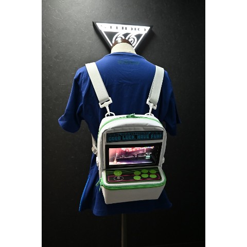 2017年に企画を開始し、2020年に完成したアーケードコントローラー付きリュック『ゲーセンバッグ』をより手に取りやすいサイズ、価格に再構築した『ゲーセンバッグミニ』です。