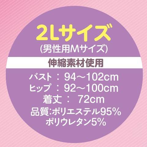 おとこの娘用2Lサイズ 華麗なる輝き! あなたを輝かせるメタリックカラー 密着感と光沢感がたまらない! ツルツルの触り心地に感度もUP! 最高のフィット感がカラダを包み込む 快適なストレッチ素材 伸縮性抜群のリング付き 適度な締め付けが気持ちいい!! おとこの娘用2Lサイズ(男性用Mサイズ) 伸縮素材使用 バスト94~102cm ヒップ92~100cm 着丈72cm 品質:ポリエステル95% ポリウレタン5%