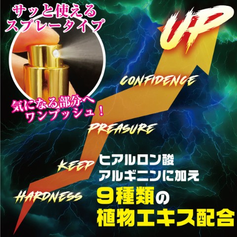 「長い夜を楽しみたい。」「今日は失敗できない。」「自信を取り戻したい。」そんな男性の為のメンズスプレーです。コンパクトでシックなデザインの容器は、ポケットに入れても目立たず安心して持ち歩けます。サッと使えるスプレータイプですので、いざという時にスグに使えてパートナーにもバレにくいです。ヒアルロン酸やアルギニンに加え、厳選した9種類の植物エキスをふんだんに配合しました。使用時は噴射部位に爽快感が広がります。