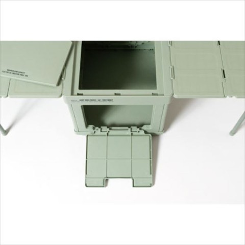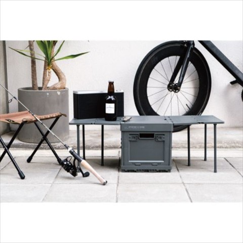 一見普通の折り畳みコンテナに見えますが、実はフタにギミックが隠されておりフタを左右に大きく広げてテーブルとして使うことができます。