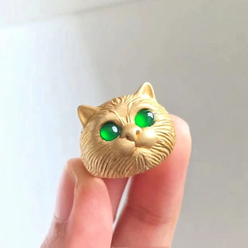 【#kawaiiiii!】グリーンの眼の猫リング(ゴールド)