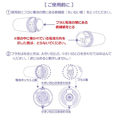 動作確認用のボタン電池は、本体内にセット済みです。丸い絶縁紙を外してからご利用ください。