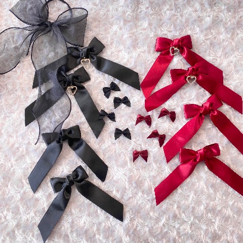 【推し事】ミニリボンクリップ 4個セット(レッド)
