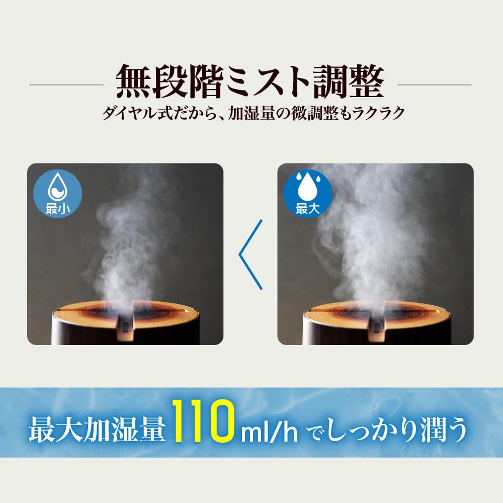 ダイヤルを回すだけの簡単操作。最大加湿量110ml/h