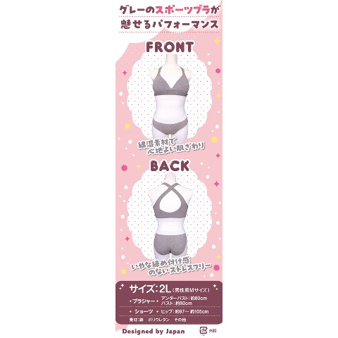 【おとこの娘用ランジェリー】スポブラ&ショーツ グレー おとこの娘用